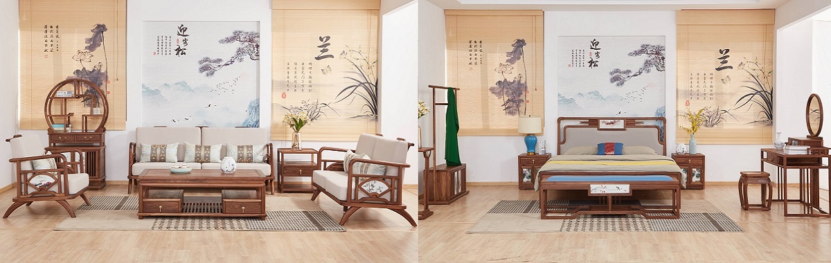 新中式禪意家具、北美黑胡桃木家具、北美白蠟木家具、瓷木藝術家具