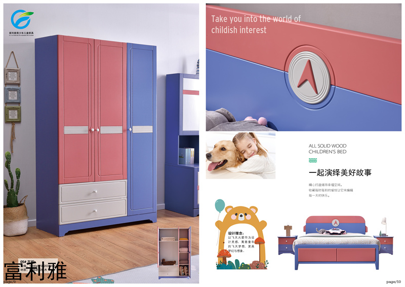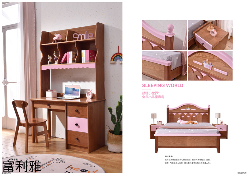 目前富利雅家具擁有多個系列的青少年兒童套房家具產品,公司生產的青少年兒童家具注重安全環保和時尚色彩,每一款家具設計充分考慮青少年兒童成長特點和生活習慣,精選優質實木,突出個性化色彩,打破傳統的設計風格,顯示出無盡的青春活力;打造出綠色環保、安全又讓孩子們喜歡的家具。