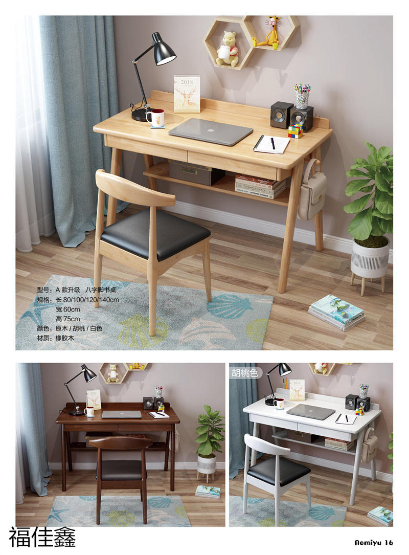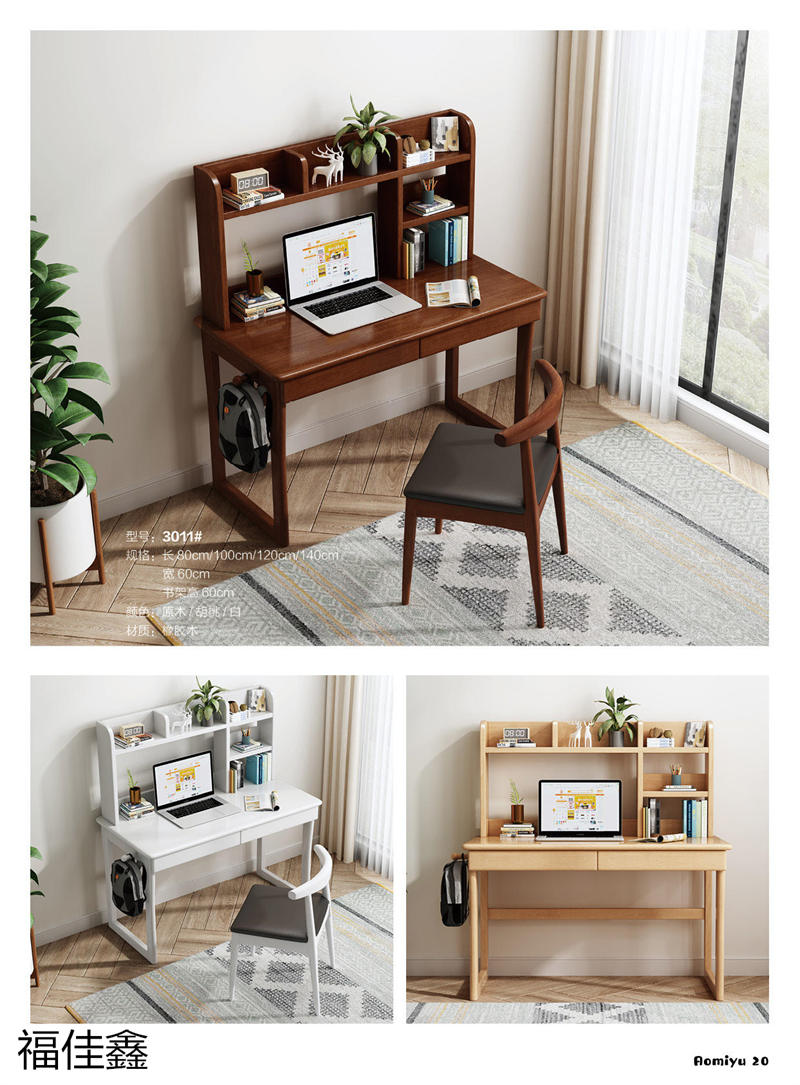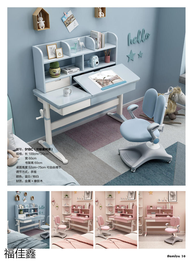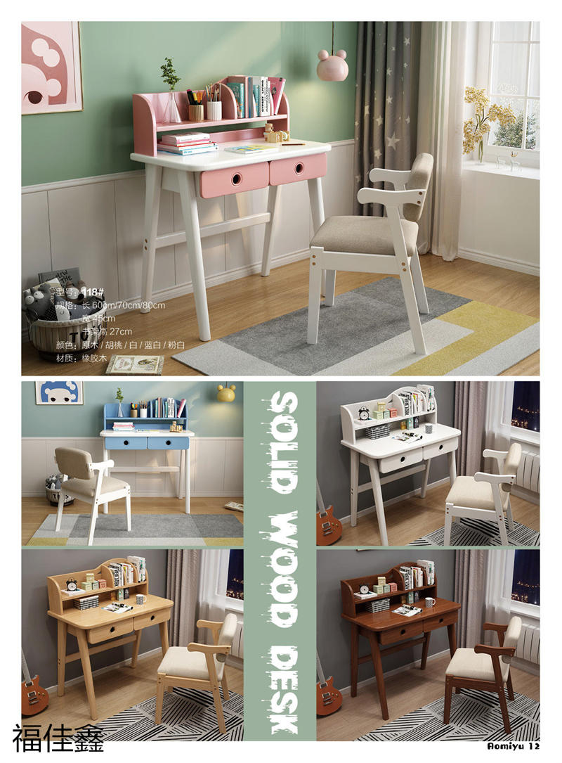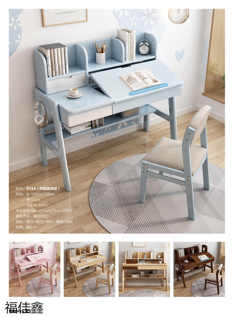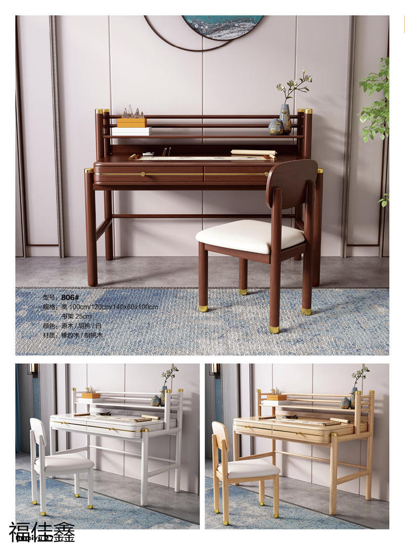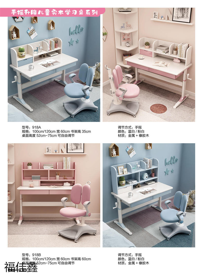 福佳鑫家具產品有:全實木升降款書桌系列、手搖升降兒童實木學習桌系列、小戶型書桌系列、簡易書桌(不帶書架)系列、輕奢巖板書桌系列、多功能帶書架書桌系列、極簡書架書柜系列、換鞋凳系列、衣帽架系列等產品,顏色有原木色、白色、藍白、粉白、黑色、寶馬灰等。