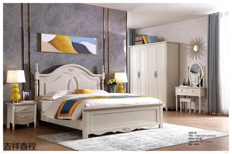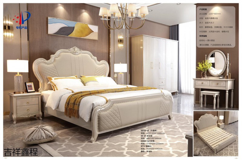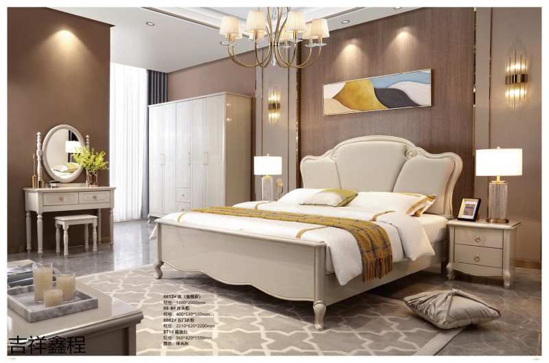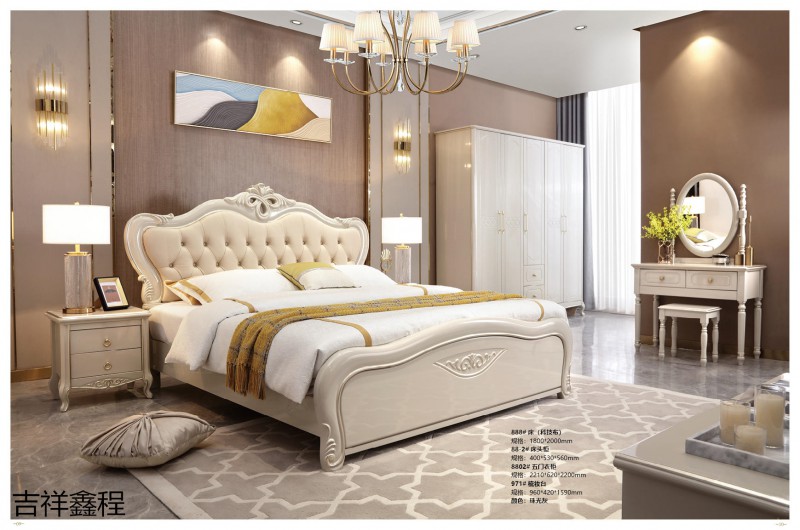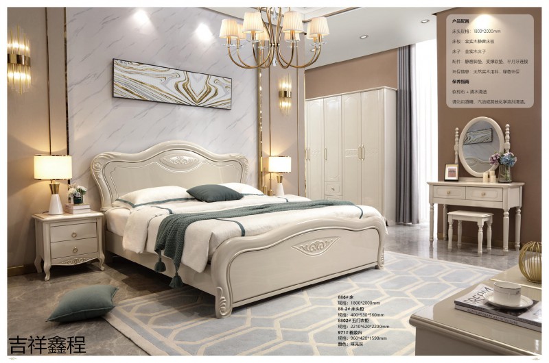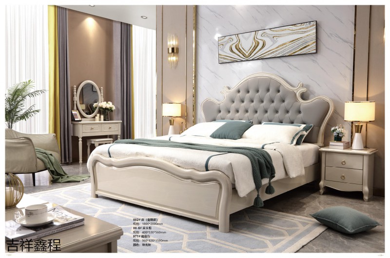 實木簡歐家具,南康實木簡歐輕奢家具廠家,珠光灰、象牙白簡歐靜音床,江西簡歐輕奢實木套房生產廠家,吉祥鑫程家具