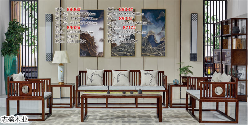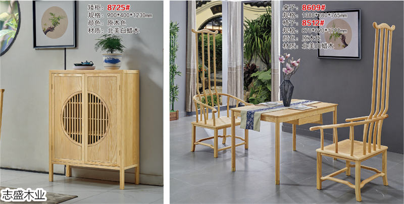 志盛木業白蠟木新中式家具、小烏金現代簡約家具產品: