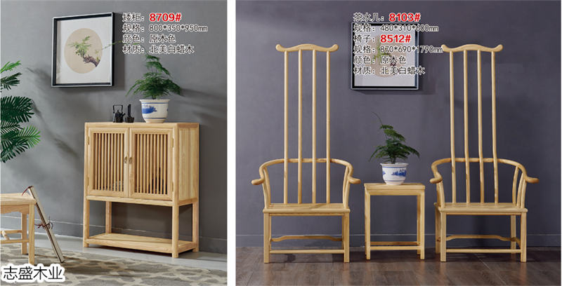 產品以進口美國白臘木為主材料,生產新中式家具和禪意系列家具,這十幾年來,公司先后與福建廈門、廣東樂從及蘇州蠡口等全國各地的家具業商家強強聯手,信息共享、技術共享,開放與包容的經營策略,使得志盛公司產品無論在外型美觀度,還是在產品實用性上都有質的飛越,產品也更環保。