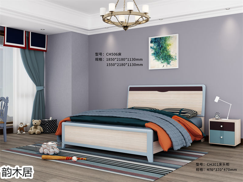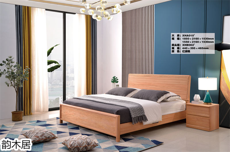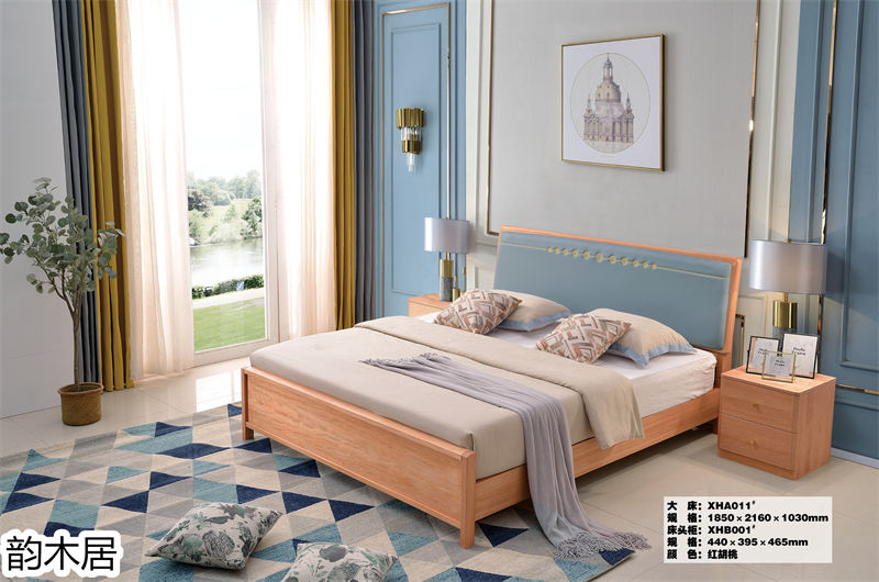 現(xiàn)代休閑實木床,南康現(xiàn)代簡約實木床,江西紅胡桃色實木床、彩色實木床生產(chǎn)廠家,木韻年華家具招商加盟,韻木居家具