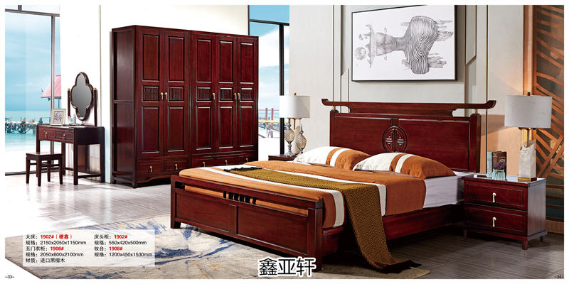 鑫亞軒家私 實木靜音床、新中式黑檀木家具產品: