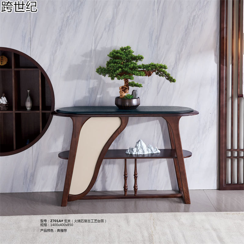 實木巖板茶臺桌,南康白蠟木茶桌,天然火燒石、巴塞羅那巖石,江西典雅棕、淺灰棕茶臺,玄關、茶水柜、博古架,漫琴??缡兰o家具生產廠家