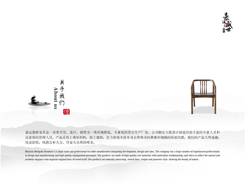 江西艾郎家具有限公司旗下豪運盛世家具是一家集開發(fā)、設(shè)計、銷售為一體的規(guī)模化、專業(yè)化的茶臺生產(chǎn)廠家。公司擁有大批設(shè)計制造經(jīng)驗豐富的專業(yè)人才和高素質(zhì)的管理人員。產(chǎn)品采用上乘原材料,做工細致,著力體現(xiàn)木質(zhì)本身自然唯美的典雅和細膩的原始紋路。我們的產(chǎn)品天然成趣,線條舒展,風格古樸大方,盡顯大自然的唯美。