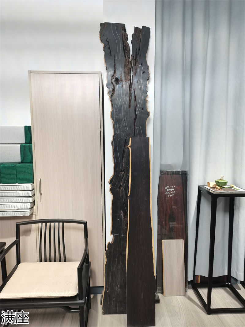 紫光檀做好家具一般出材率10-15%,3噸相當一噸紅酸枝。一般家具(出材率20%),好家具出材率為6-8%。木性穩定,相對于紅酸枝木性更穩定,一般不會出現開裂、翹曲質量問題;木材油性大,密度大,手感厚重,家具成品不需做燙蠟、涂漆處理,表面溫潤光滑。做大件困難,做頂箱柜幾無可能(能做也搬不動),畫案(寫字臺)、羅漢床要等機遇(當然如果能買到2萬/噸以上的料沒問題)。木材全部為原木帶皮進口,做出的家具沒白皮、沒拼補的幾率比較小,如果非要達到沒皮沒補的要求,格要基本翻番,木材新料原色發灰,大大遜色與紫檀、紅酸枝家具色澤(按照一般人邏輯紅木應該是紅色)。如果對家具進行燙蠟處理,則木材顏色轉為純黑色,與烏木接近,只有經過長期使用或經過特殊作舊處理,才有會接近老紫檀的色澤;因木材硬重,加工比普通木材困難,但鋸切、刨光、打磨都可順利進行,打卯困難一些,油性太大粘鉆;由于木材硬重,與其他材質相比,缺少木質感,而與石材或化工材料相象。