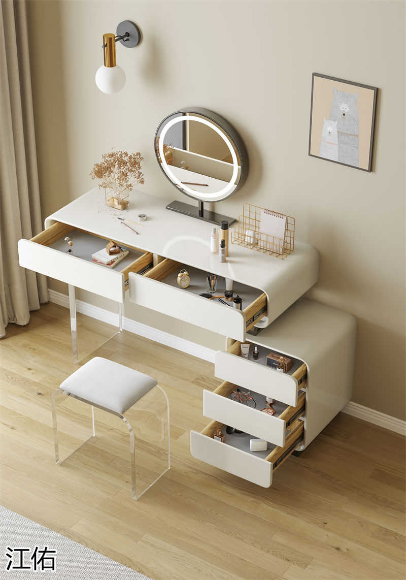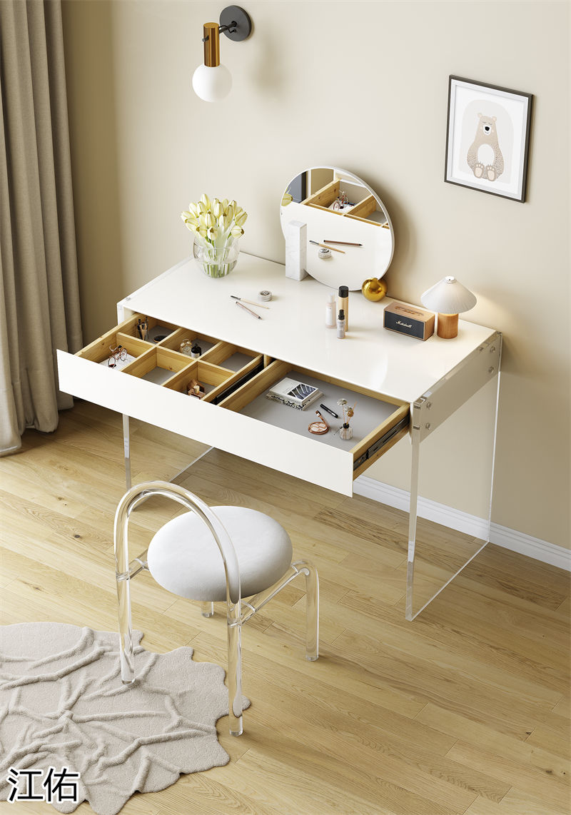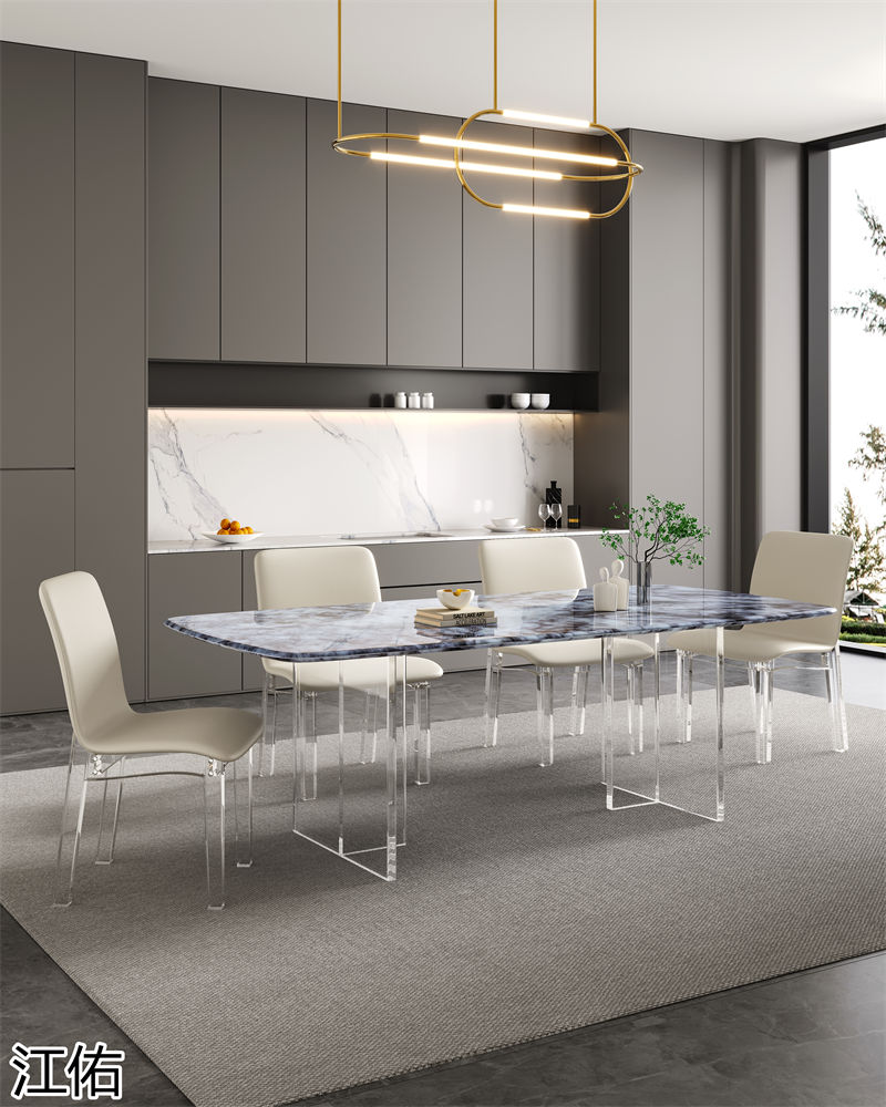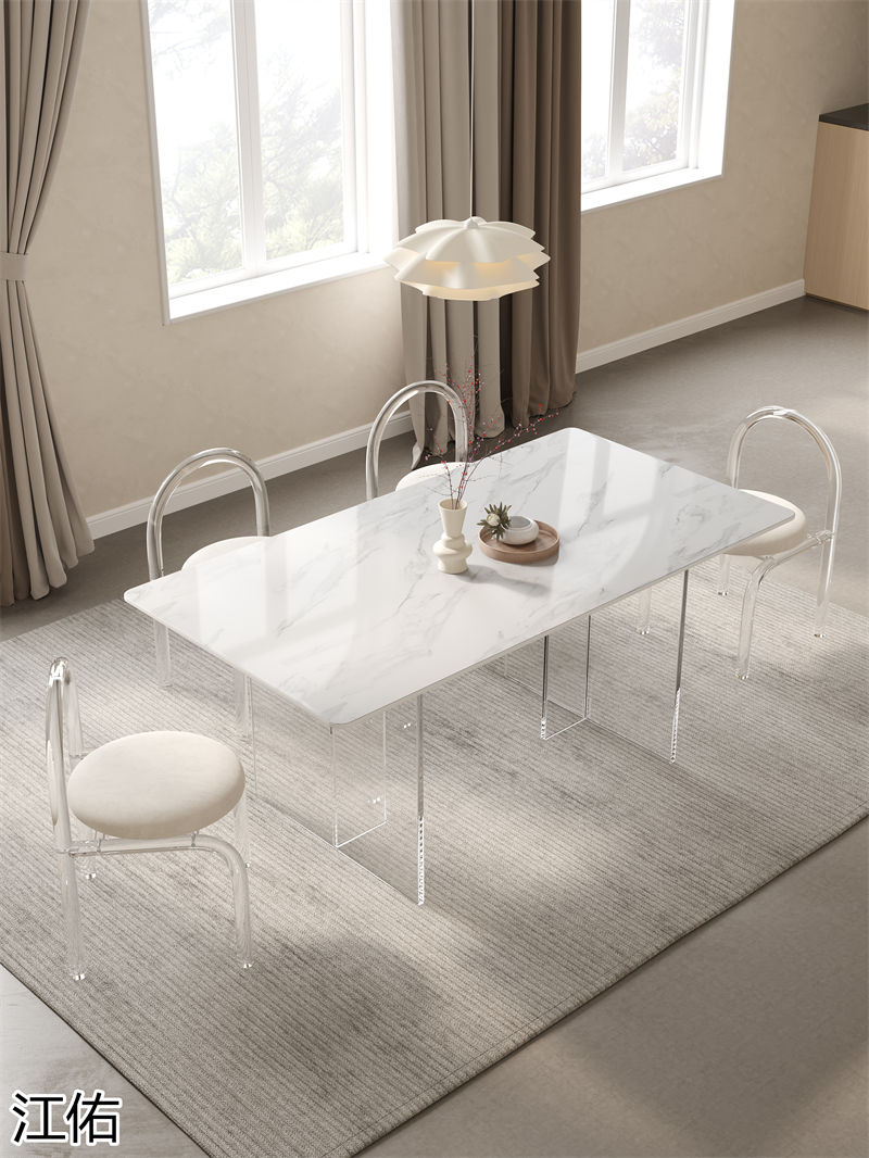 網紅設計師家具,南康亞克力家具,透明懸浮現代創意家具,奶油風亞克力巖板茶幾、椅子、妝臺、床頭柜、超晶石餐桌,江西江佑家具生產廠家