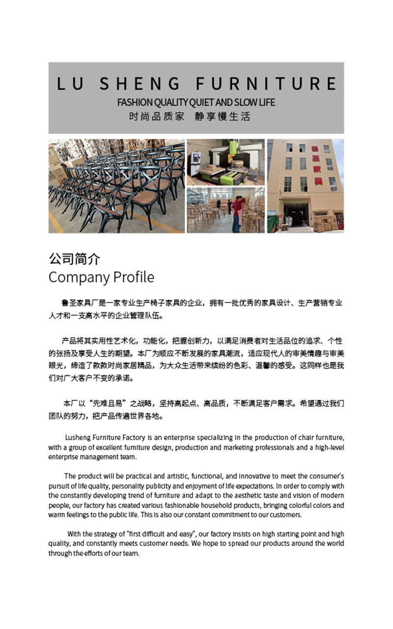 魯圣家具廠是一家專業(yè)生產(chǎn)椅子家具的企業(yè),擁有一批優(yōu)秀的家具設(shè)計(jì)、生產(chǎn)營(yíng)銷專業(yè)人才和一支高水平的企業(yè)管理隊(duì)伍。