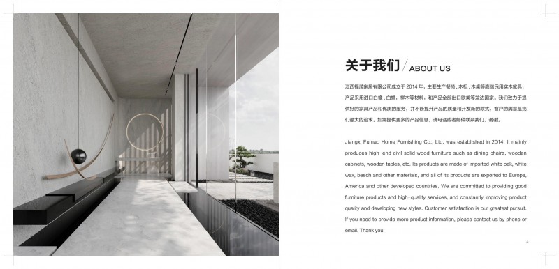 江西福茂家居有限公司成立于2014年,主要生產餐椅,木柜,木桌等高端民用實木家具,產品采用進口白橡、白蠟、櫸木等材料,產品出口歐美等發達國家。我們致力于提供好的家具產品和優質的服務,并不斷提升產品的質量和開發新的款式,客戶的滿意是我們最大的追求。