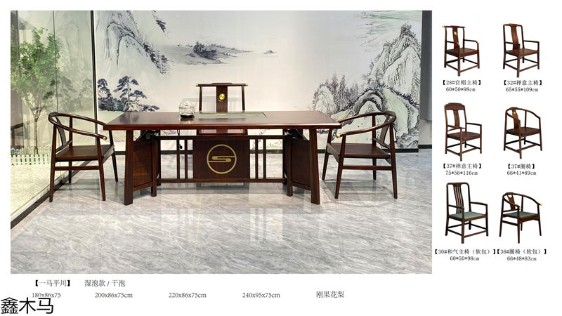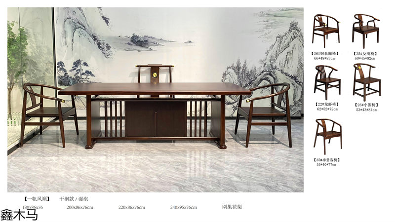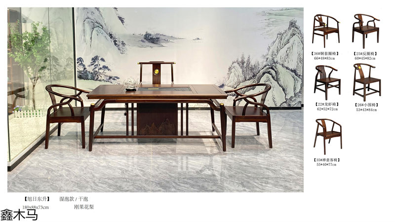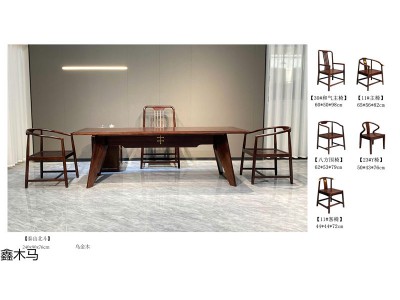 新中式風格茶臺,南康實木茶桌、辦公桌,新中式茶空間、辦公家具,江西剛果花梨木、烏金木、格木茶臺、茶椅、博古架,鑫木馬家具生產廠家