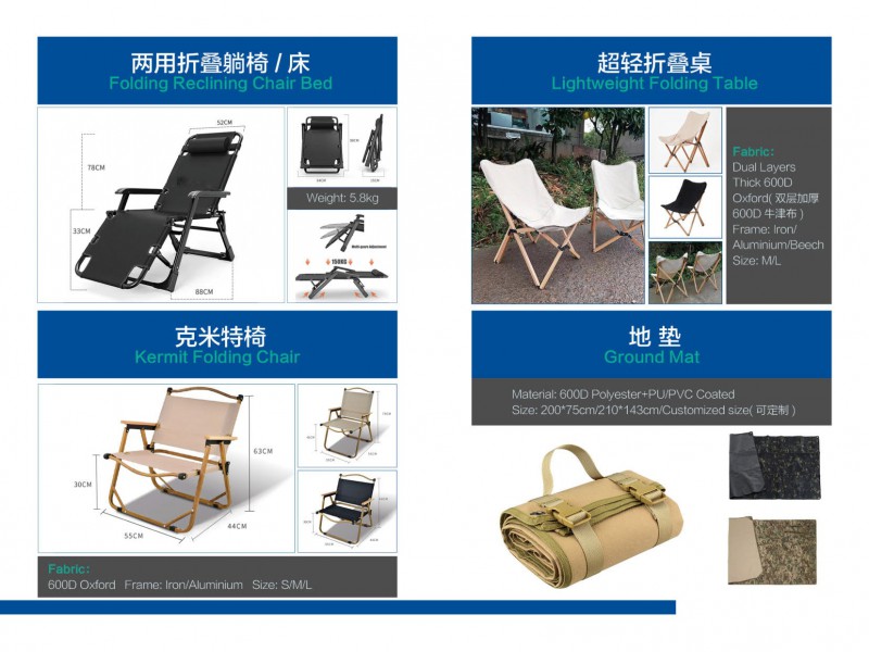 戶外家具,外貿(mào)戶外家居,江西戶外用品,露營裝備,超輕折疊床,南康折疊桌,折疊高背椅,兒童沙灘椅,兩用折疊躺椅/床,露營椅,克米特椅,防滑椅腳保護(hù)球套,地墊,通用椅套配套生產(chǎn)廠家,贛州贛品空間戶外用品公司