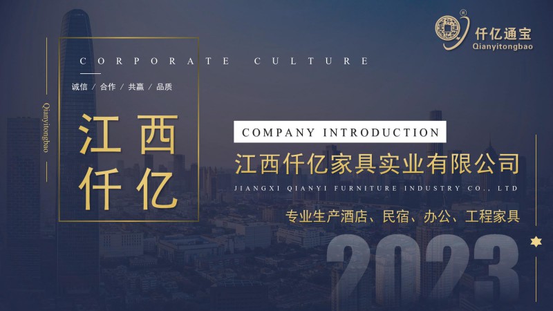 江西仟億家具實業有限公司來自中部家具生產基地--南康。公司成立于2005年,是一家集設計、研發、生產銷售為一體的大型專業化生產酒店(賓館)家具的集團公司。公司大型展廳位于江西省贛州市南康區泓泰家具市場E區,占地面積3000平方米,承接制造星級酒店、豪華公寓、知名連鎖會所及裝飾配套工程。