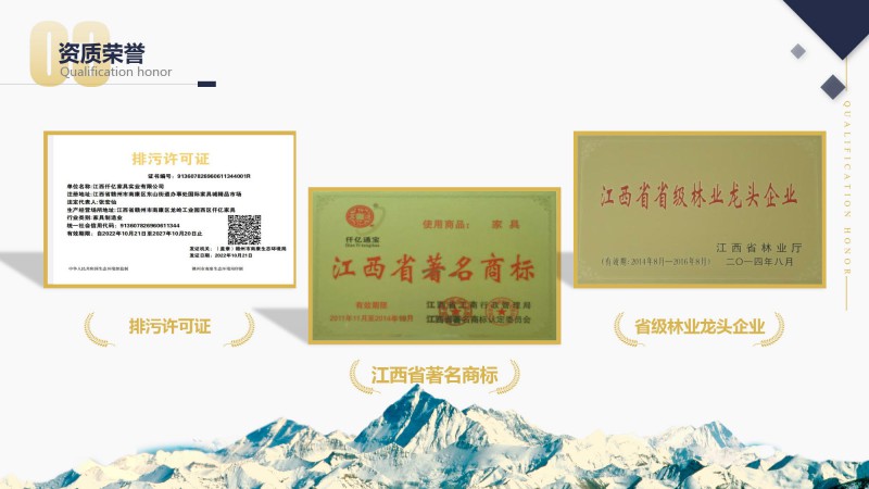 公司自主研發設計三大系列產品及商標“仟億通寶”酒店家具系列、“仙夢坊”軟體系列、“仟億沐香”白蠟木家具系列。