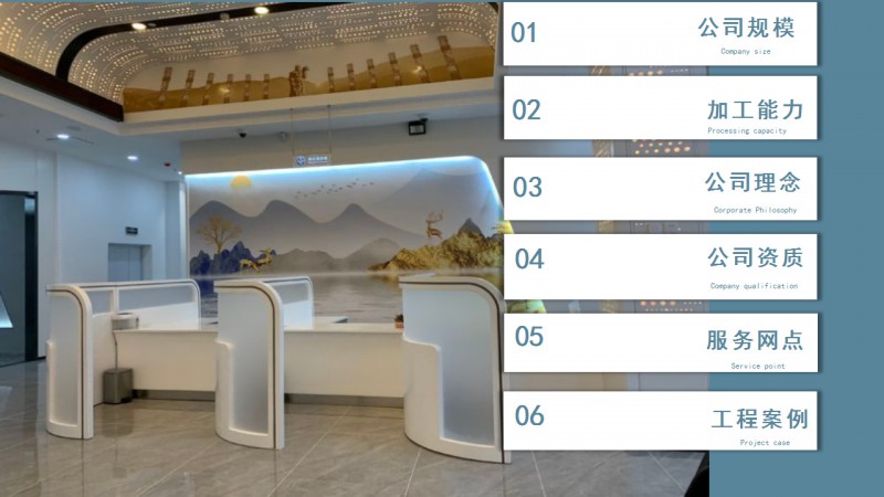 “日月輝”的經營理念。廣州日月輝以“打造中國銀行業和通信營運商的網點家具品牌制造企業”為目標,一直堅持“以人為本、環保家具”的發展方向。環保的原材料:每個產品從設計、生產到交付,我們都會考慮到對環境所帶來的影響,選用環保原材料生產——歐倫皮革、大亞中纖板、大寶油漆等,減少對人和環境的傷害。先進的生產工藝:設計上不斷創新,工藝上不斷改進,例如人造石表面波化工藝、不銹鋼無指痕工藝等。選用一流的專業生產設備,具備進入大工業化生產的能力。未來,我們會堅持以“打造中國銀行業和通信營運商的網點家具品牌制造企業”為目標,堅持“以人為本、環保家具”的發展方向,引領銀行業和通信營運商的家具發展新潮流。