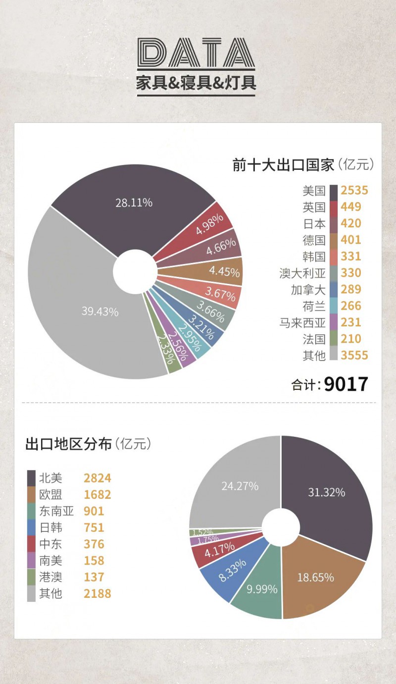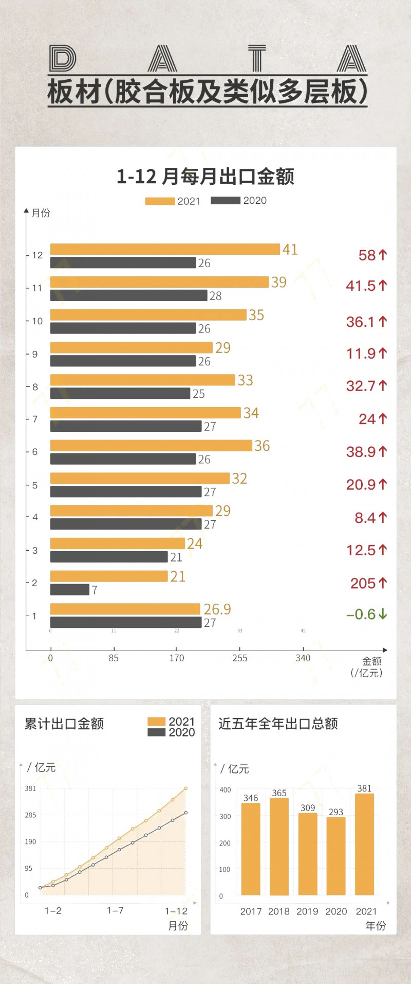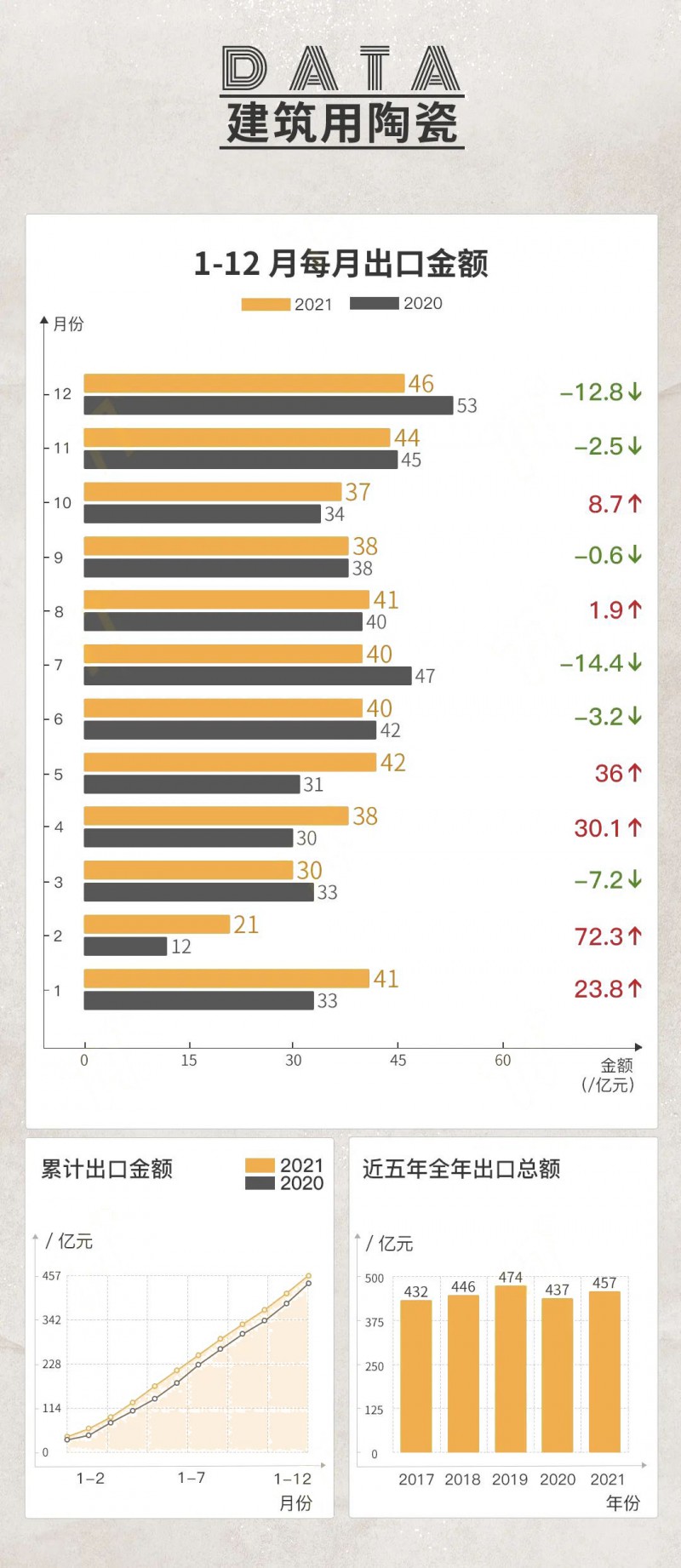 核心提示:1月19日,2021中國家居建材進出口大數據發布,家具、床墊、燈具、建筑裝飾陶瓷、板材等產品進出口總額都較2020年有所提升。