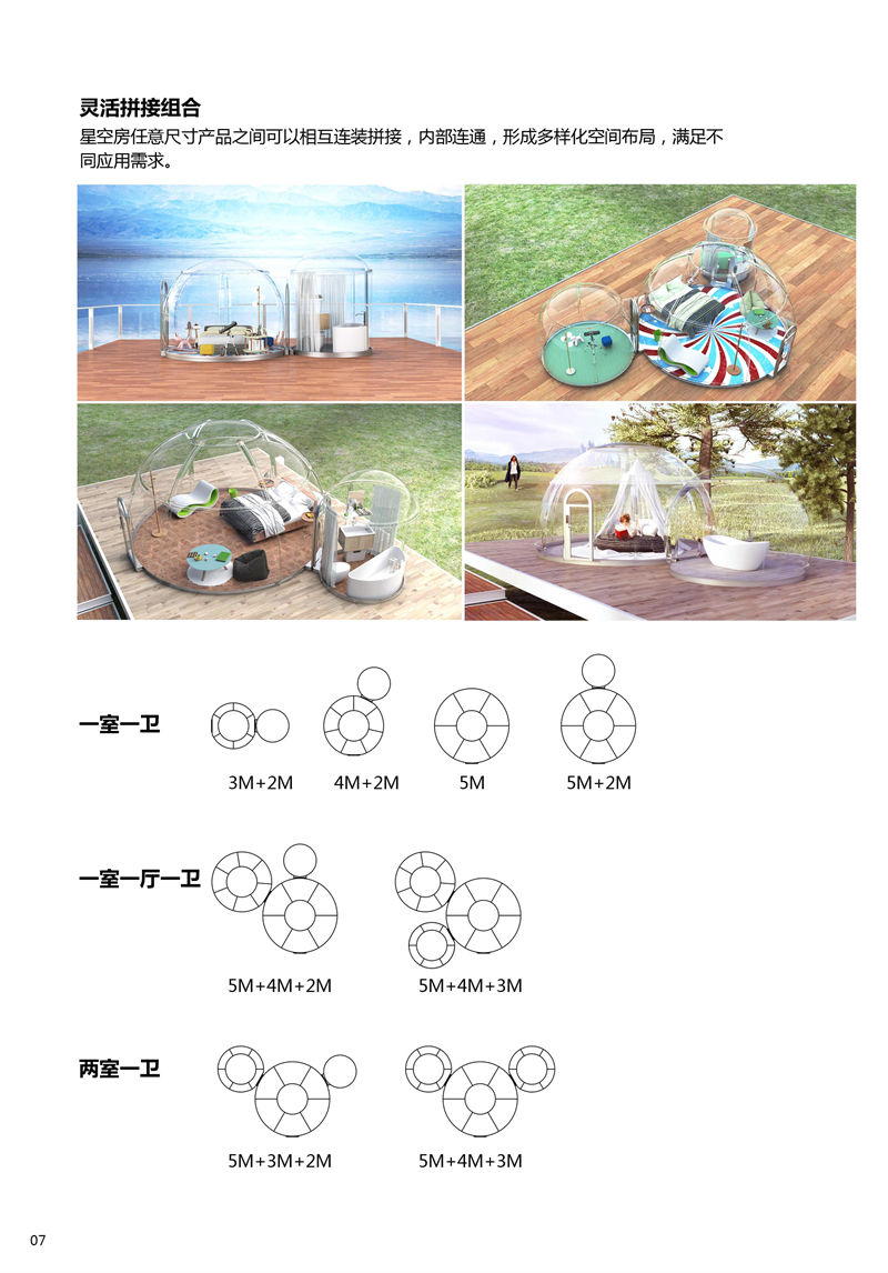 目前,igloo系列產(chǎn)品擁有直徑2.1M,3.3M;3.5M,3.7M,4M,4.5M,5M,5.3M,9M等多種規(guī)格,且不同規(guī)格產(chǎn)品之間可相互拼接組合使用,產(chǎn)品使用靈活性高,能夠滿足多種場(chǎng)景的應(yīng)用需求。