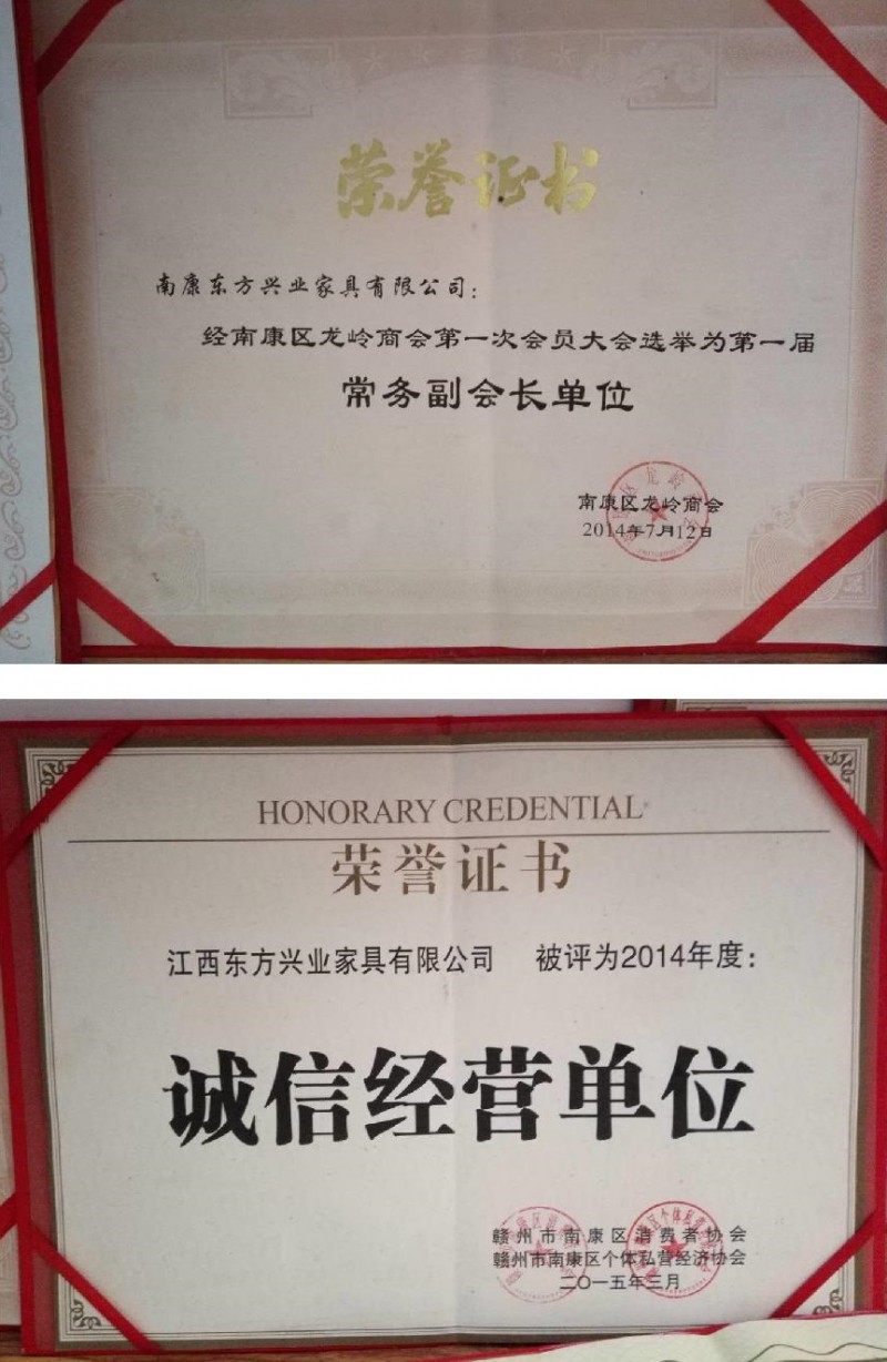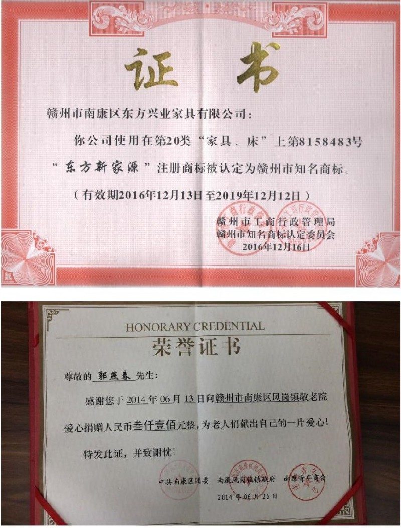 東方興業(yè)家具資質(zhì)榮譽(yù):