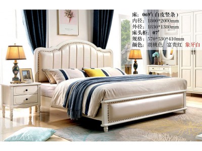 木佰創(chuàng)美式家具:象牙白美式壓紋床069#(白皮豎條)