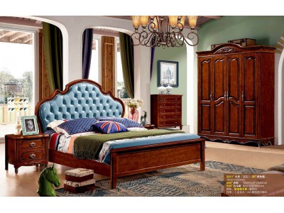 潤潼新美式家具9001#大床(淺藍)