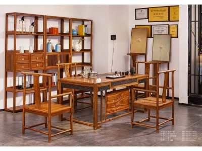詩意東方新中式紅木:巧奪天工書架、茶臺