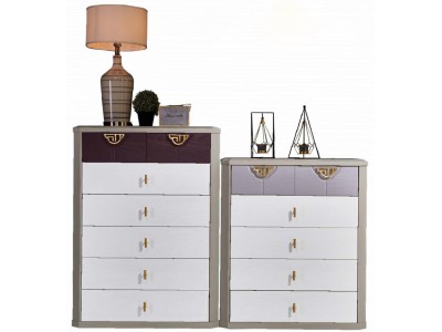 采木園致青春現代輕奢實木系列9893#七斗柜(A色 灰+白)、9896#六斗柜(C色 灰+白)