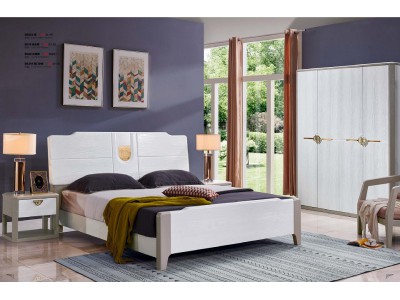 采木圓致青春現(xiàn)代輕奢實(shí)木系列9805#床(A色 白+灰)
