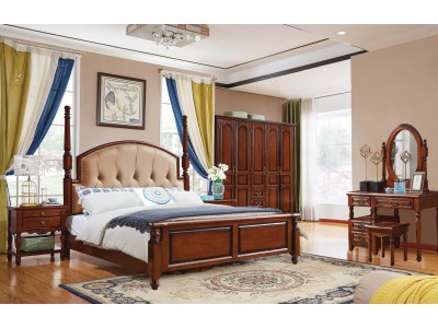 華夏國康美式復古胡桃色系列大床623#
