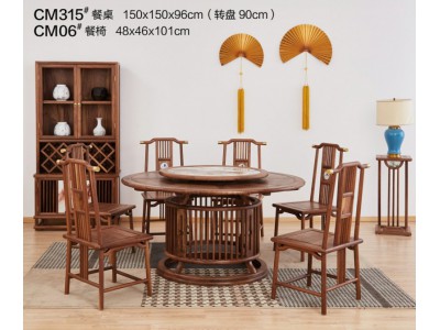 菲百年新中式禪意北美黑胡桃木CM315#餐桌、CM06#餐椅