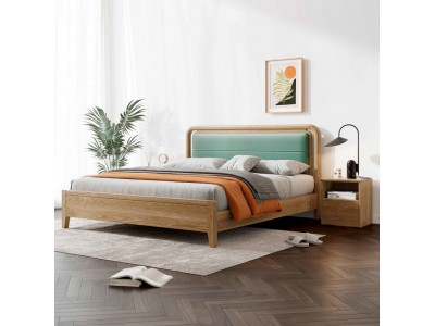 朗朝現代極簡白蠟木家具:L2605#軟包床(原木色)、L261#床頭柜