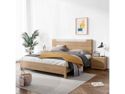 朗朝現代極簡白蠟木家具:L2603#分色床(原木色)、L262#床頭柜