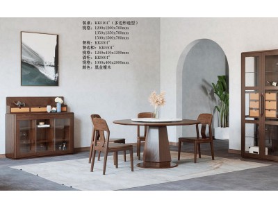 艾美儷家可可西里現代極簡黑金檀木家具:餐桌KK5101#(多邊形造型)、餐椅KK3501#