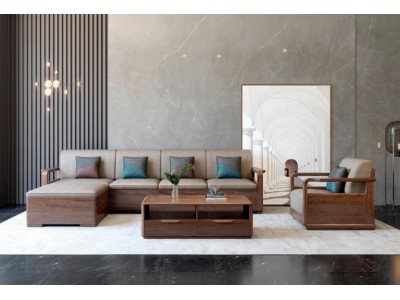 艾美儷家可可西里現代極簡黑金檀木家具:轉角沙發KK3206#、長茶幾KK3301#