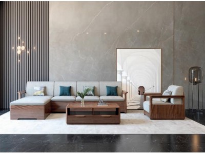 艾美儷家可可西里現代極簡黑金檀木家具:轉角沙發KK3203#、長茶幾KK3301#