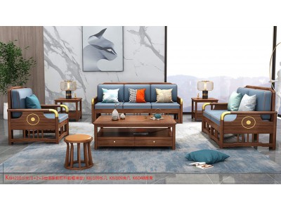 康優寶輕奢新中式胡桃木家具:K6H210沙發 1+2+3位(B靠前欄桿前框薄墊)