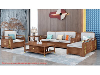康優寶輕奢新中式胡桃木家具:K6H170沙發 轉角+單位(B靠背儲物箱體薄墊)