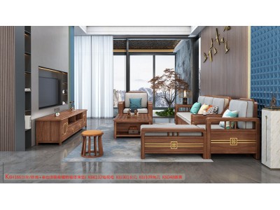 康優寶輕奢新中式胡桃木家具:K6H166沙發 轉角+單位(B靠背儲物箱體薄墊)