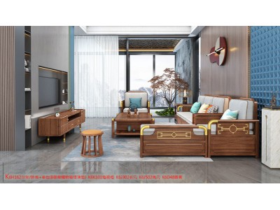 康優寶輕奢新中式胡桃木家具:K6H162沙發 轉角+單位(B靠背儲物箱體薄墊)