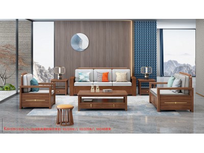 康優(yōu)寶輕奢新中式胡桃木家具:K6H109沙發(fā) 1+2+3位(B靠背儲物箱體薄墊)
