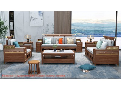 康優(yōu)寶輕奢新中式胡桃木家具:K6H91沙發(fā) 1+2+3位(A靠背欄桿前框薄墊)