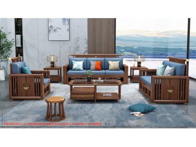康優(yōu)寶輕奢新中式胡桃木家具:K6H90沙發(fā) 1+2+3位(A靠背欄桿前框薄墊)