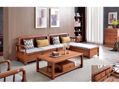 安德穩(wěn)南美胡桃木木蠟油原木家具:轉(zhuǎn)角沙發(fā)L333# |