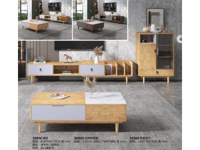 云杉木語現(xiàn)代北歐家具:3201#高柜、3202#拉伸電視柜、3220#巖板茶幾