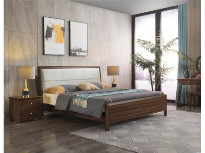 木來客現代輕奢極簡黑胡桃木家具:8A20#床