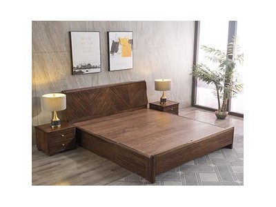 木來客現代輕奢極簡黑胡桃木家具:8A19#床