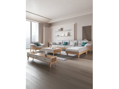 匠者白蠟?zāi)鞠盗屑揖撸篔D-612沙發(fā)原木色4+踏