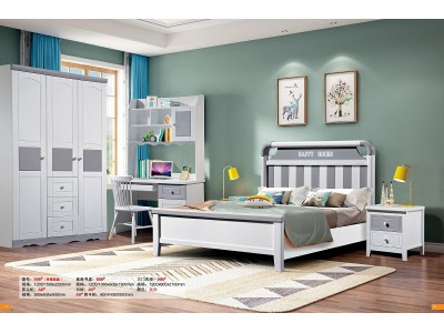 嘻哈年華青少年兒童實木床508#(幸福家庭)灰白