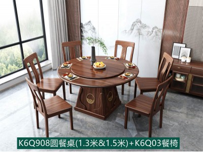 康優(yōu)寶輕奢新中式胡桃木家具:K6Q908圓餐桌(1.3米&1.5米)+K6Q03餐椅