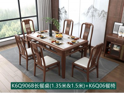 康優寶輕奢新中式胡桃木家具:K6Q906B長餐桌(1.35米&1.5米)+K6Q06餐椅
