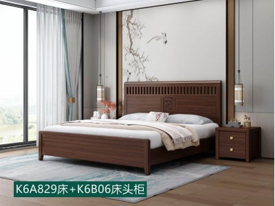 康優寶輕奢新中式胡桃木家具:K6A829床+K6B06床頭柜